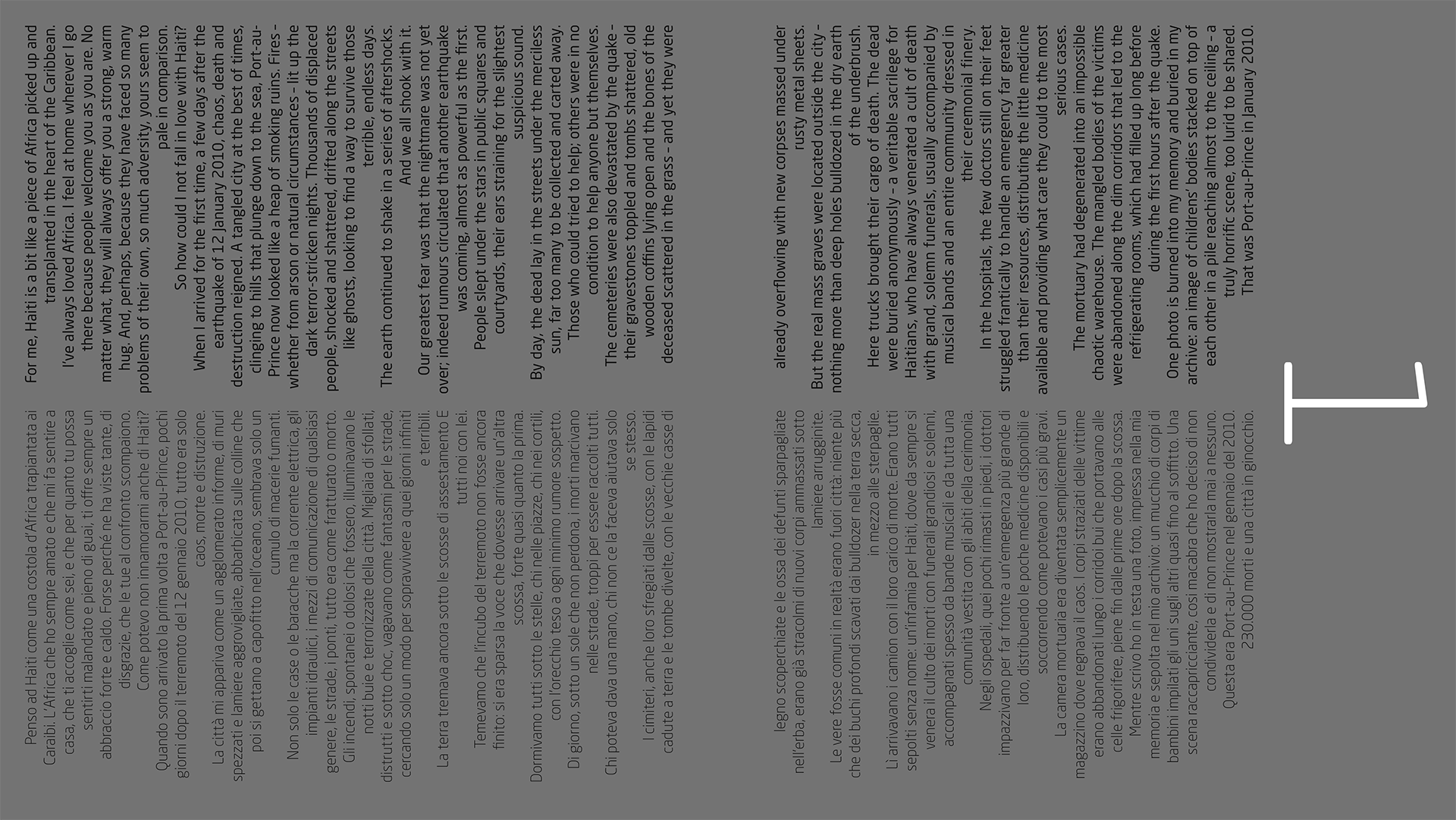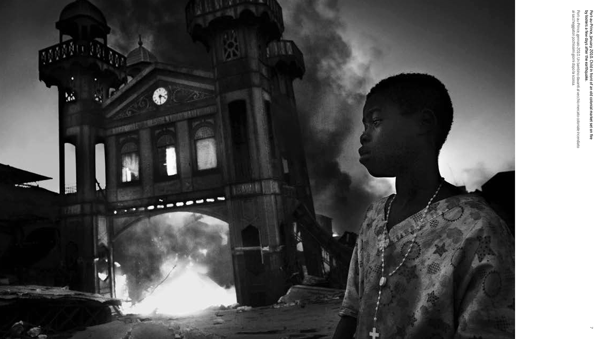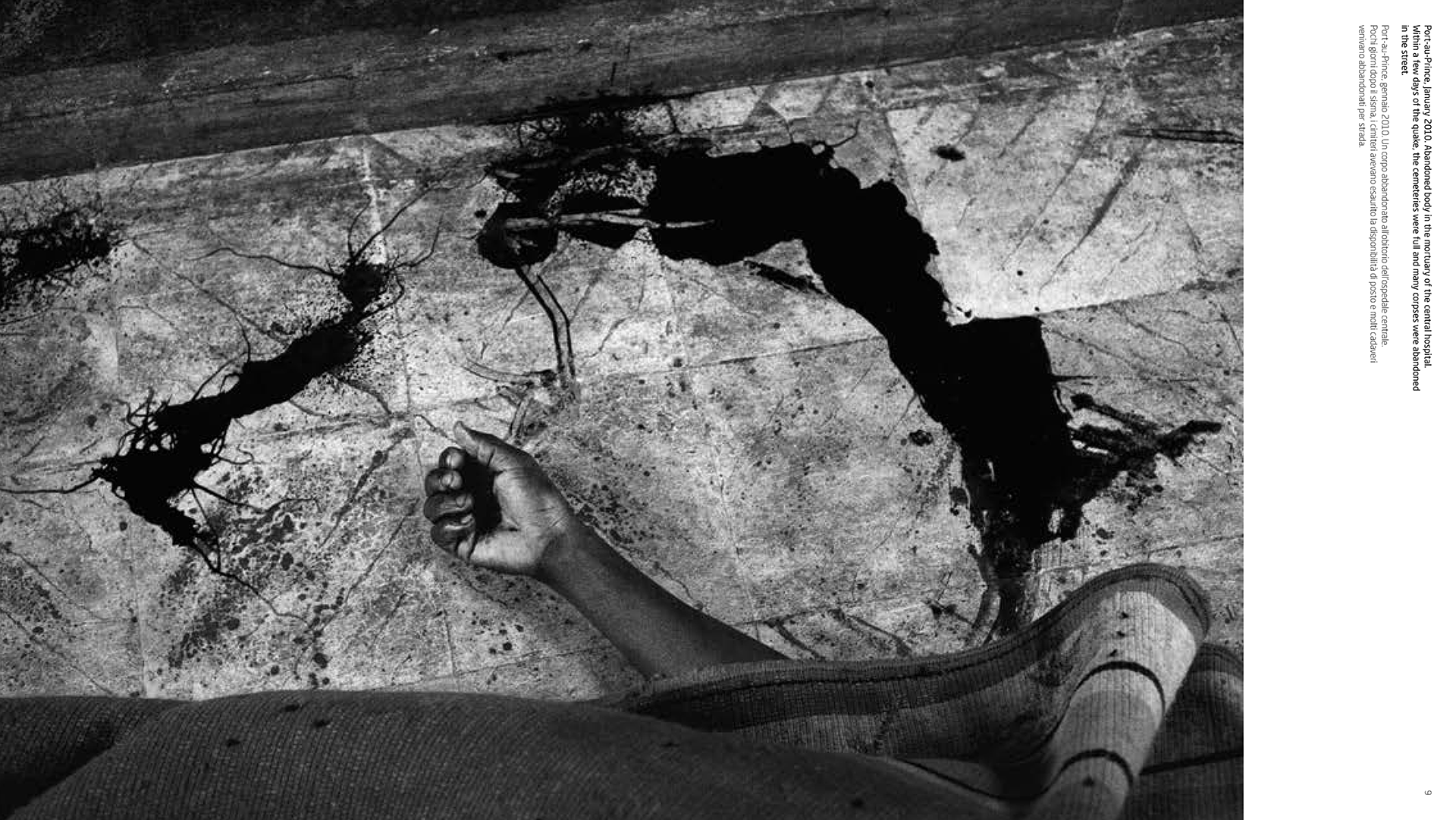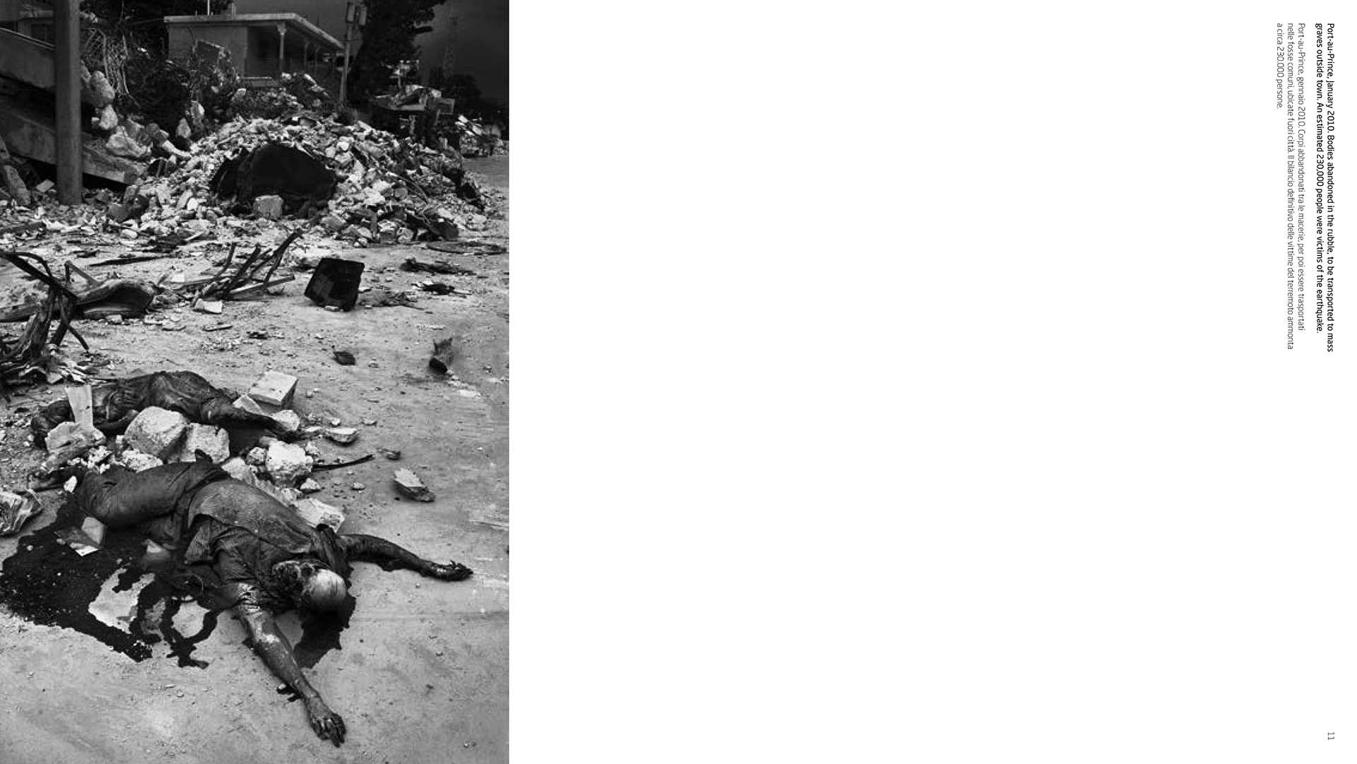 Pubblicato in doppia lingua – inglese e italiano – da Dewi Lewis Publishing e Peliti Associati, Haiti Aftermath sintetizza cinque anni di reportage in settanta fotografie, tutte in bianco e nero, molte delle quali realizzate con apparecchio panoramico e restituite in grande formato dal volume mediante l’utilizzo di ‘teatrini’.